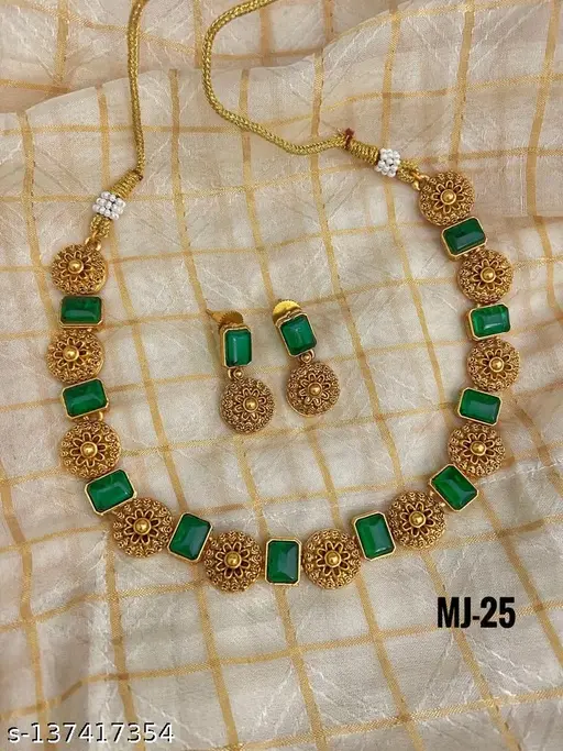 Designed with anti-tarnish technology, this set ensures long-lasting shine and durability, keeping its brilliance intact for years. Whether styled with a saree, lehenga, or anarkali, the Emerald Grace Set completes your festive look with a regal glow.
